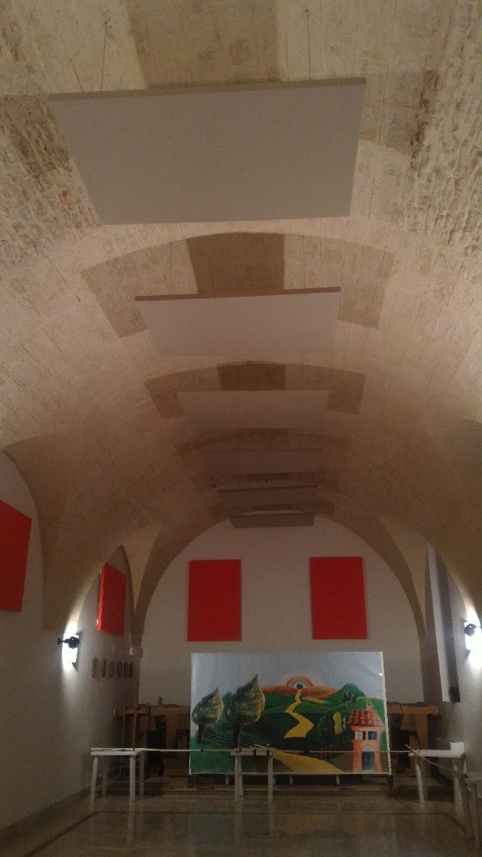 Un eccessivo livello del rumore di fondo può essere controllato attraverso l’applicazione di materiale fonoassorbente altamente performante in piccole porzioni dello spazio a disposizione, intervenendo su pareti (tipo quadro) o a soffitto (tipo vela o nuvola). Con i nostri pannelli AkuPan, nati con la tecnologia utilizzata in studio di registrazione e quindi molto più efficaci dei prodotti presenti normalmente in commercio, per esempio, possiamo garantire un’efficacia fino al 60% maggiore sulle frequenze proprie del parlato rispetto alla fibra di poliestere, alla spugna di poliuretano (piramidale o bugnato), o altri materiali sintetici. Questo si traduce nella possibilità di coprire, attraverso i pannelli AkuPan, una superficie ridotta per raggiungere gli obiettivi di progetto rispetto a quella necessaria con altri materiali.