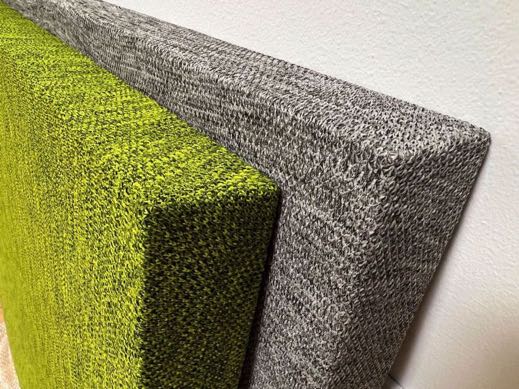 Il tessuto fonotrasparente Matrix ci permette di non fare cuciture o risvolti negli angoli dei pannelli fino a 10 centimetri di spessore, portando una nuova estetica per i nostri pannelli fonoassorbenti di ogni forma.