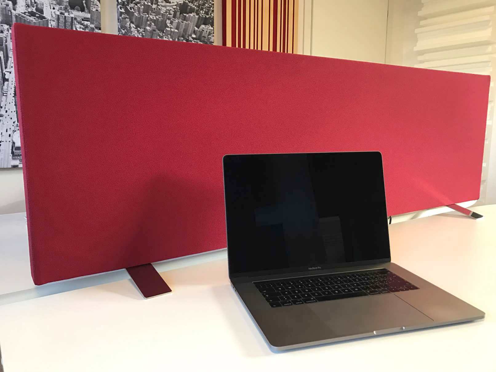 Anche i divisori separè bifacciali AkuPan® SCREEN FireSafe assorbono su due lati e riducono le interazioni tra le zone delle sale: negli open space possono essere utilizzati in modo molto efficace per saparare le differenti zone di lavoro e organizzare gli spazi, anche con l’aiuto dell’aggancio magnetico laterale.