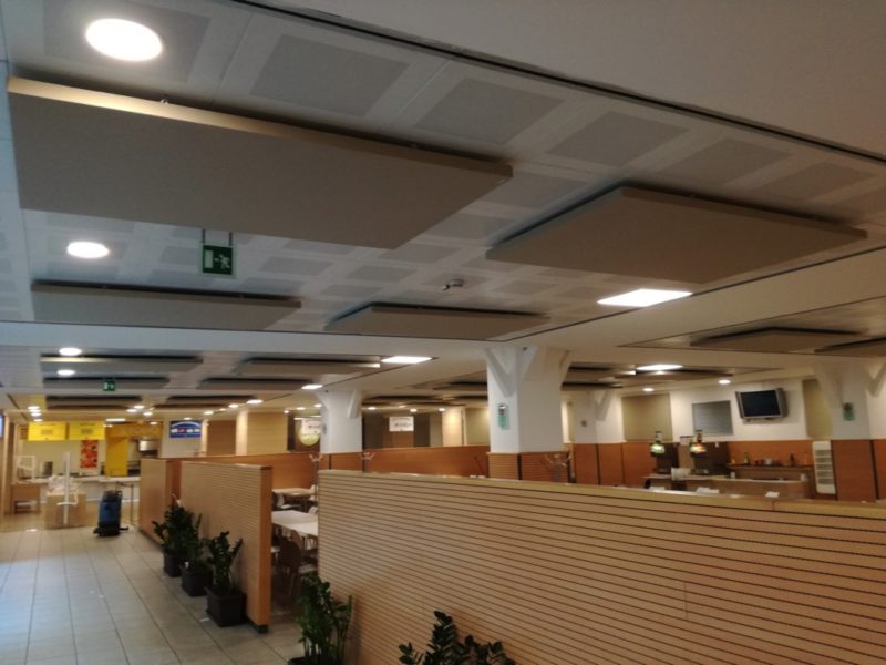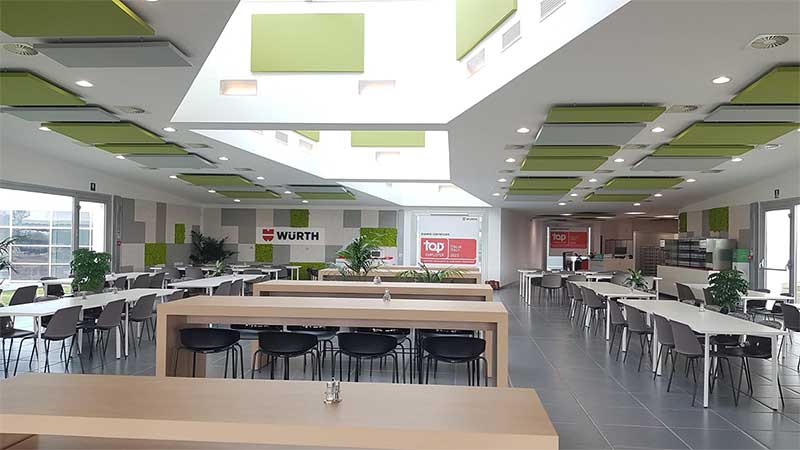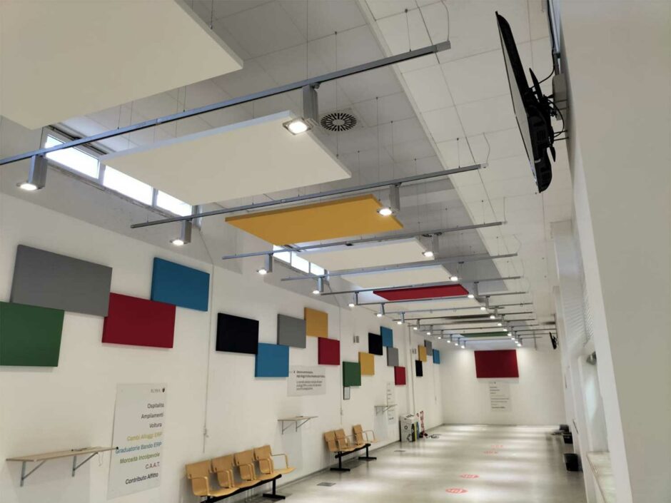 La funzione dei pannelli fonoassorbenti non è da confondersi con quella comunemente chiamata “insonorizzazione” in quanto questa si riferisce all’isolamento acustico tra due o più ambienti e si ottiene attraverso interventi di tipo strutturale. I pannelli fonoassorbenti AkuPan® sono progettati per agire sull’acustica interna delle sale, e ne garantiscono un sensibile miglioramento attraverso interventi non invasivi, grazie anche al design curato e personalizzabile. Dove si richieda isolamento acustico oltre che fonoassorbimento, attraverso opportuni calcoli ci è comunque possibile stimare la riduzione della pressione sonora interna alla sala ottenibile con l’inserimento delle pannellature e verificare che questa riduzione possa essere già sufficiente a rispondere alle necessità. Nelle fotografie, alcune nostre forniture di pannelli fonoassorbenti a Roma: http://www.centopercento.bio/ http://www.inforno.eu/ Uffici Unicredit Banca, Roma