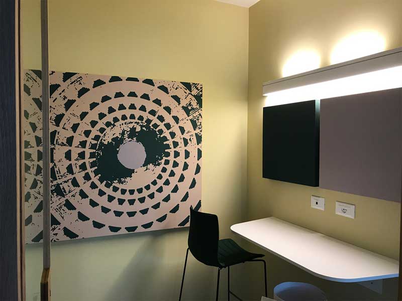 Oudimmo Acoustic Design è produttore diretto e può fornire quadri fonoassorbenti e pannelli fonoassorbenti a Roma, nel Lazio e in tutto il centro Italia a prezzi concorrenziali e con alta qualità. La consegna è diretta e l’installazione, grazie a squadre di installatori dedicate, è rapida e precisa con direzione dei lavori affidata a geometri e tecnici acustici di grande esperienza. Oltre alla consulenza gratuita online, con la quale possiamo elaborare un calcolo a distanza e proporre le soluzioni acustiche più adatte, è possibile richiedere un nostro sopralluogo per acquistare e installare i nostri pannelli fonoassorbenti a Roma con una verifica strumentale degli ambienti, sulla cui base elaboreremo una proposta tecnico-economica su misura per voi, avvalendoci delle elevate caratteristiche prestazionali ed estetiche dei nostri prodotti.