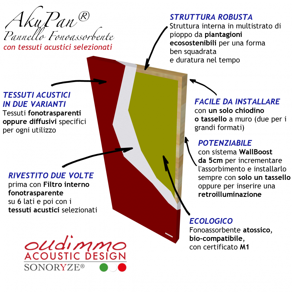 AkuPan® è il pannello acustico fonoassorbente ad alte prestazioni rivestito con tessuti certificati.