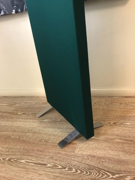 I divisori acustici AkuPan® SCREEN Firesafe sono autoportanti fino a 180 cm di altezza e si collocano nelle sale tipo “totem” in modalità “freestanding” con apposite gambe di appoggio in acciaio inox realizzate con taglio laser. Le gambe sono di grandezza 33cm e sollevano il pannello di 5cm da terra evitando l’accumulo di polveri. Su richiesta è possibile una personalizzazione del disegno delle gambe, anche con ruote e cerniere di aggancio, contattateci per maggiori informazioni.