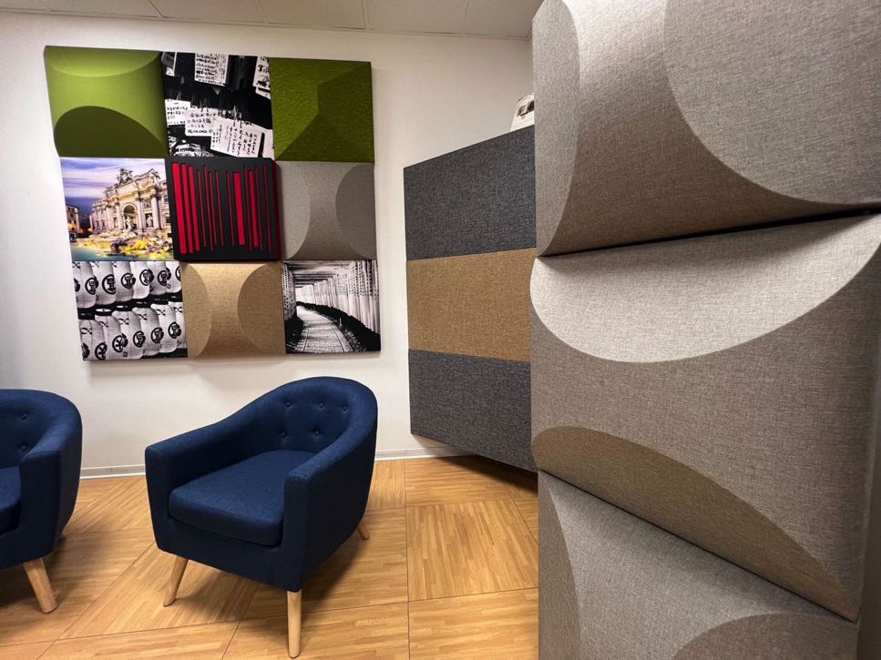 RUBIN è un diffusore acustico policilindrico e assorbitore con superficie tridimensionale ibrida fonoassorbente e diffusiva.