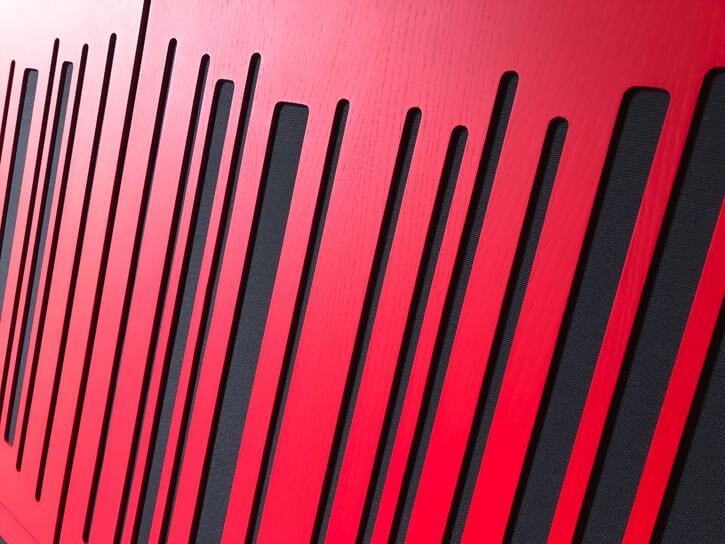 L’elemento frontale diffusivo è rigido e realizzato in MDF di alta qualità con impiallacciatura in legno, fresato con macchine CNC a controllo numerico per garantire l’assoluta precisione della sequenza e del dimensionamento. Il fonoassorbente interno ha le caratteristiche che hanno reso celebri i nostri prodotti, con assorbimenti elevati fino alle bassissime frequenze e per questo utilizzati con successo, oltre che da innumerevoli musicisti, produttori e audiofili, anche da aziende di primaria importanza nel panorama industriale, commerciale e musicale internazionale.
