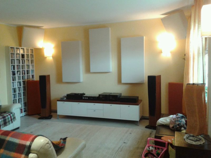 Puoi appoggiarla a terra negli angoli o dietro il sistema audio e salire fino a oltre il punto di ascolto coprendo tutta l’altezza della sala. Senza fare un foro nel muro.