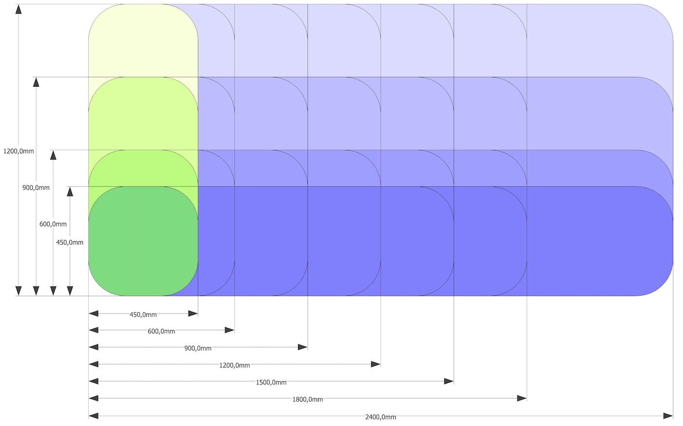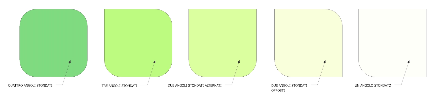 Cinque varianti disponibili da uno a quattro angoli stondati per pannello: