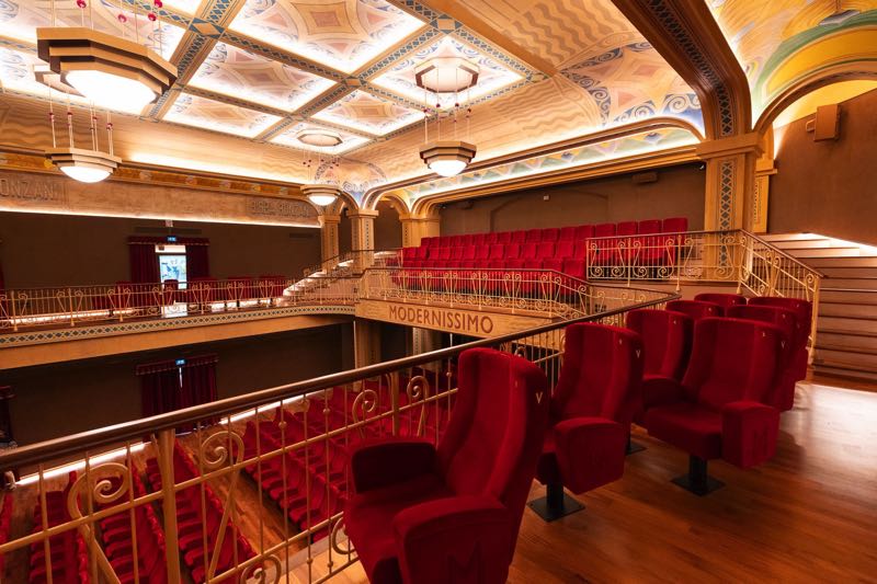 Nella foto: Cinema Modernissimo di Bologna, pareti fonoassorbenti Moniq
