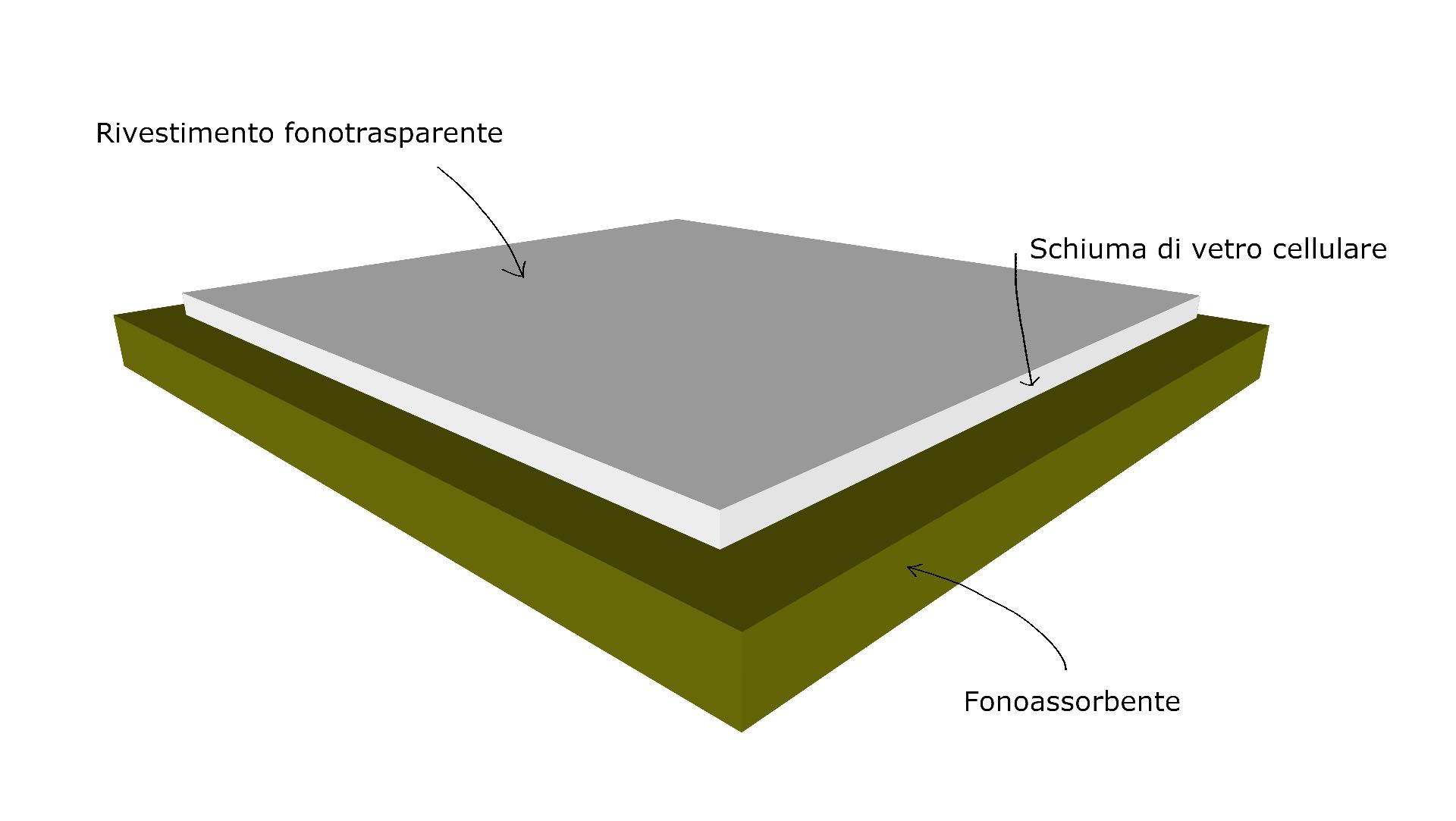 Il prodotto è caratterizzato da una superficie a vista ad elevata trasparenza acustica e da un riempitivo poroso con particolare resistenza al flusso d’aria, l’onda sonora incidente penetra con facilità e viene dissipata quasi totalmente all’interno del materiale.