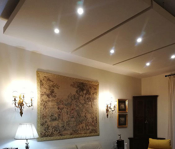 Per tutti i nostri pannelli e quadri fonoassorbenti sia per parete che per soffitto è disponibile l’integrazione di luci LED in linea o a faretto per essere utilizzati come lampade fonoassorbenti. Queste luci possono essere sia di tipologia professionale per uffici, studi tecnici, ristorazione, sia per ambienti domestici. Possiamo inoltre predisporre i pannelli per il passaggio di punti luce o lampadari sospesi.